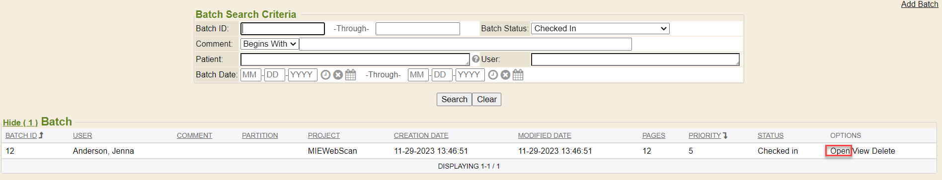 - The batch is created and instead of going to Webscan, the index page automatically pops up