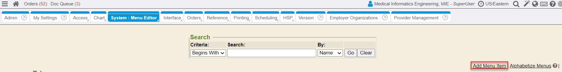 - From the Control Panel on the left side menu, click on the System chart tab and then click on the Menu Editor sub-tab