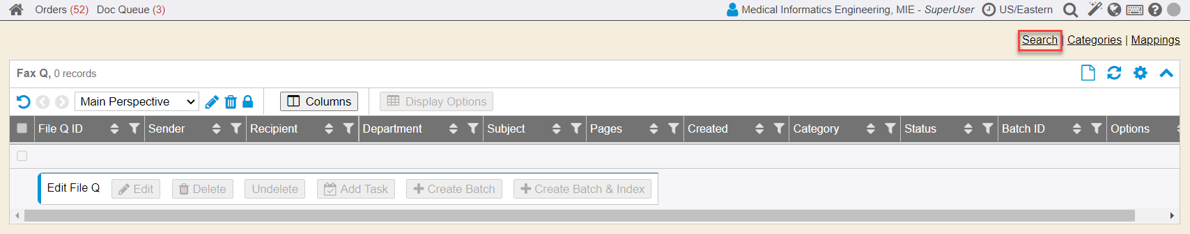 - Click the Search link in the top right corner of the File Queue sidemenu tab