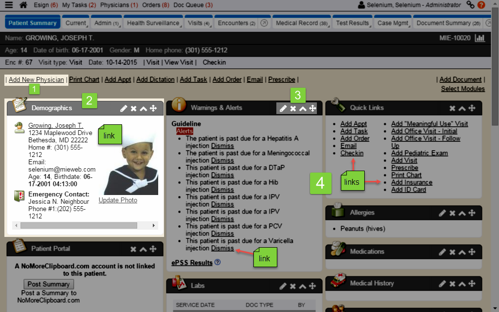 2. Portlet: A movable customizable box that displays a summary of information or links is identified as a portlet. Portlets are displayed on the Quick View or on a patient’s E-chart.