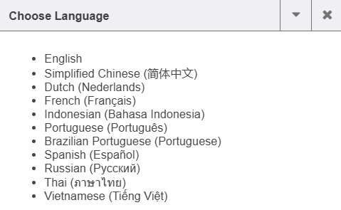 1. The world icon allows users to switch between different languages (as configured).