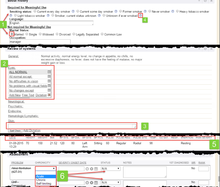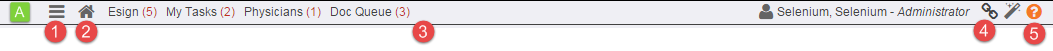 5. Note complete button: Used for taking a note on a patient; saves and closes the note.