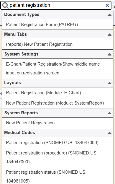 1. The magnifying glass is a search feature that allows users with the proper security to search for key functions, layouts, system settings, etc by name to quickly navigate to that area.